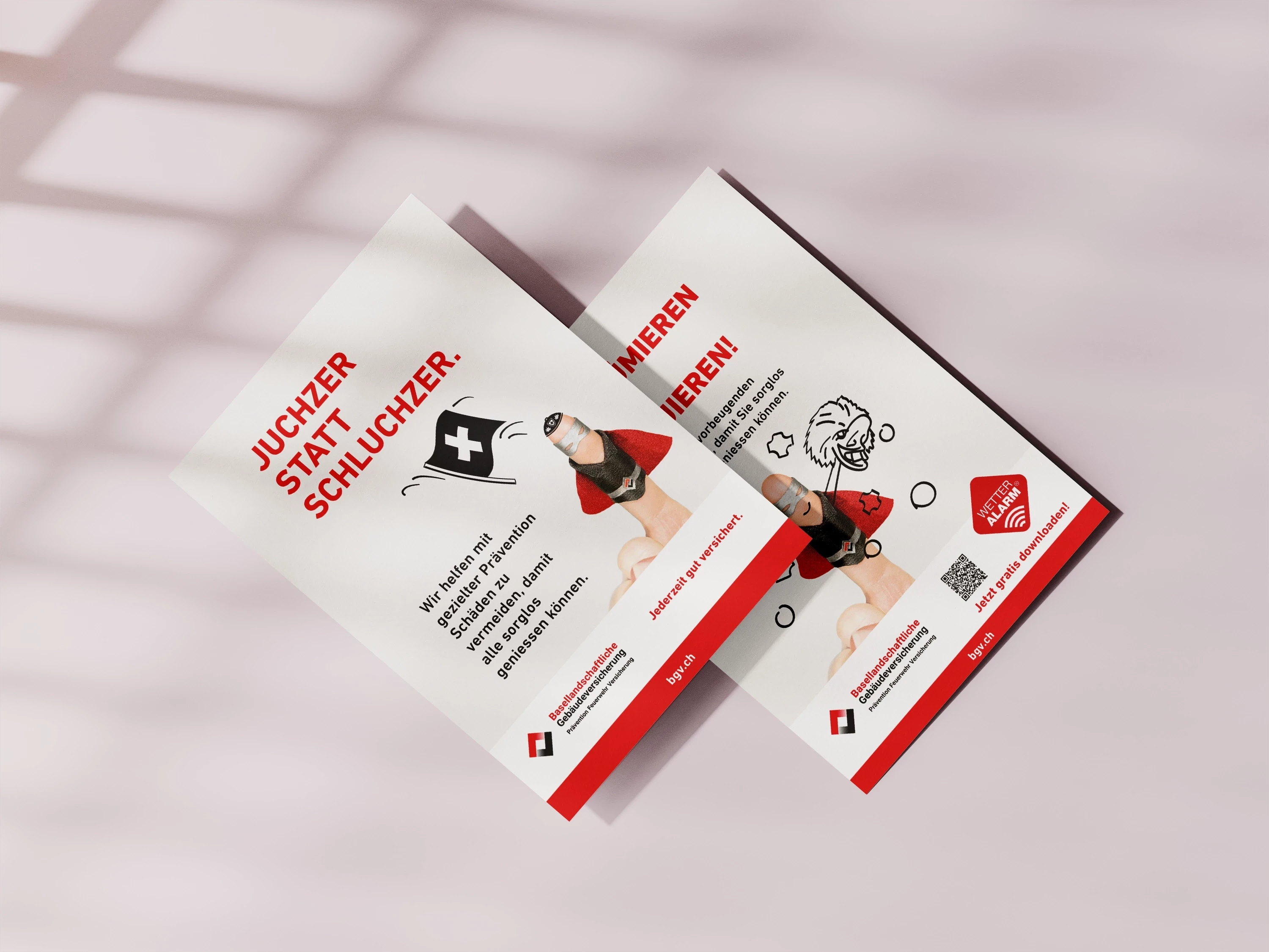 Die Basellandschaftliche Gebäudeversicherung hat eine Monopolstellung, wenn es um das Versichern von Gebäuden im Kanton Basel-Landschaft geht. Dennoch macht sich das Unternehmen Gedanken, wie es seine Präventionsaufgaben noch besser kommunizieren kann. Kurzerhand werden wir angefragt, einen Ratgeber-Flyer zu kreieren. Beim unverbindlichen Erstgespräch fragen wir nach, was mit dem Flyer geschehen soll. So wie wir immer nachfragen. Wir sehen uns nicht als ausführende Agentur. Wir sehen uns als Hinterfrager der Ausgangslage.