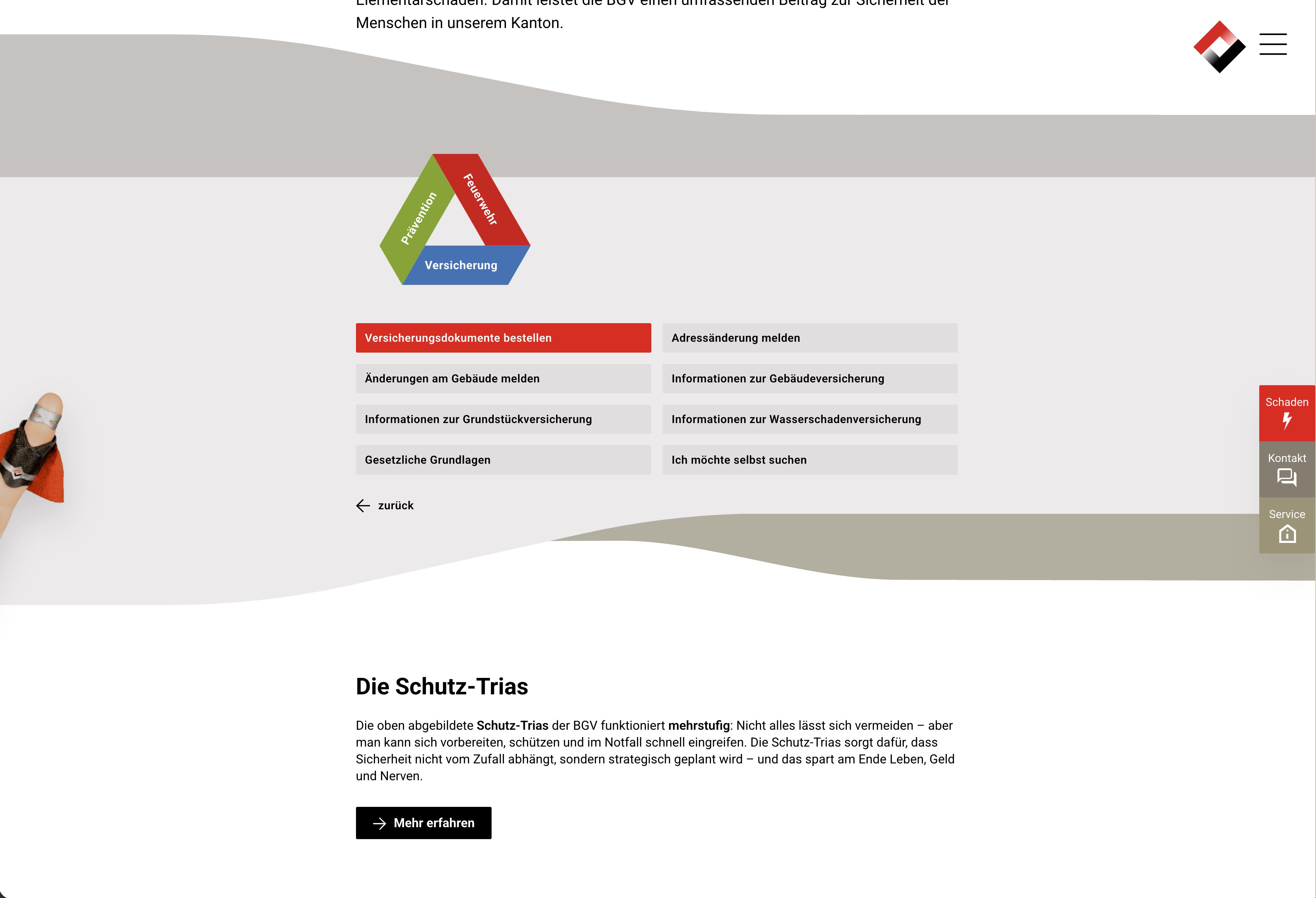 Die Struktur der Website basiert deshalb auf einer einfachen Idee: der Schutz-Trias. Sie reduziert die Aufgaben der BGV auf drei zentrale Themenbereiche: