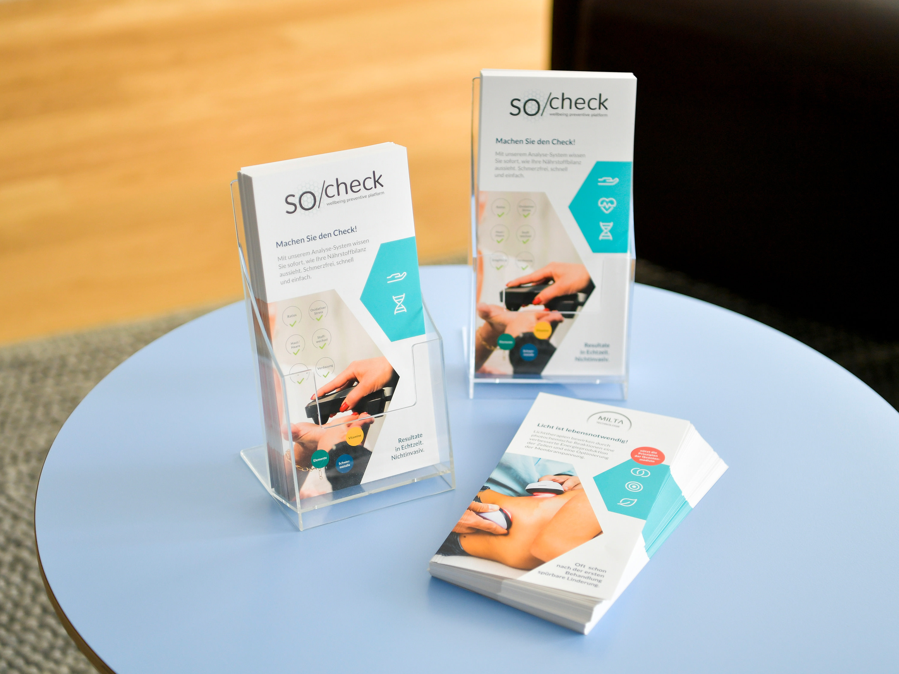 Für die Printprodukte von Holigomed haben wir uns für einen luftig-frischen Stil entschieden. Die klare Bildsprache weist auf die medizinischen Produkte hin und bringt den Claim «Kerngesund durch Innovation» zum Ausdruck. Anhand von illustrativen Icons und verständlichen Piktogrammen werden komplexe Inhalte vermittelt.